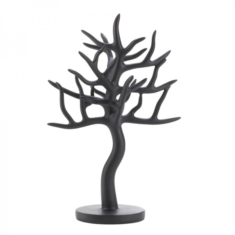 The many branches of this tree jewelry holder are ready for you to decorate with your necklaces, rings, earrings, and bracelets. The matte black finish of this sculptural jewelry stand will show off your beautiful jewelry while keeping it organized and within easy reach.