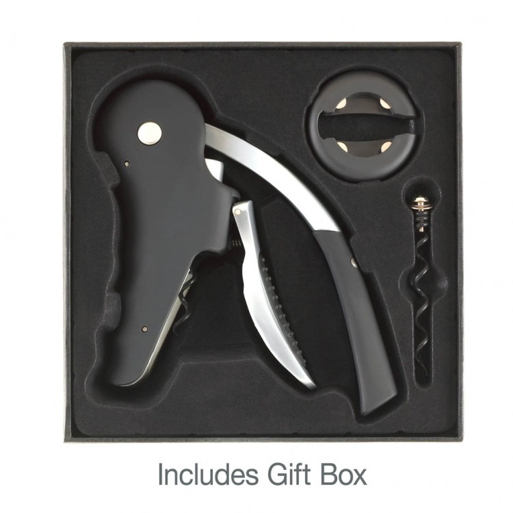 Stop struggling and start sipping sooner with this easy-to-use wine opener set! Stubborn corks are no match for this handy opener that pierces the cork and pulls it out with swift action and fluid movement. The set includes two different-length corkscrews and a foil cutter that helps remove the bottle wrapping over the cork. Cheers!