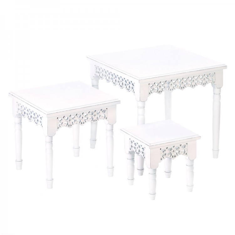 There’s no limit to what these enchanting nesting tables can do for your room! Tuck the smaller two underneath to create visual interest, stagger them to make a stepped display for plants and flowers, or place them near seating areas to use as side tables.